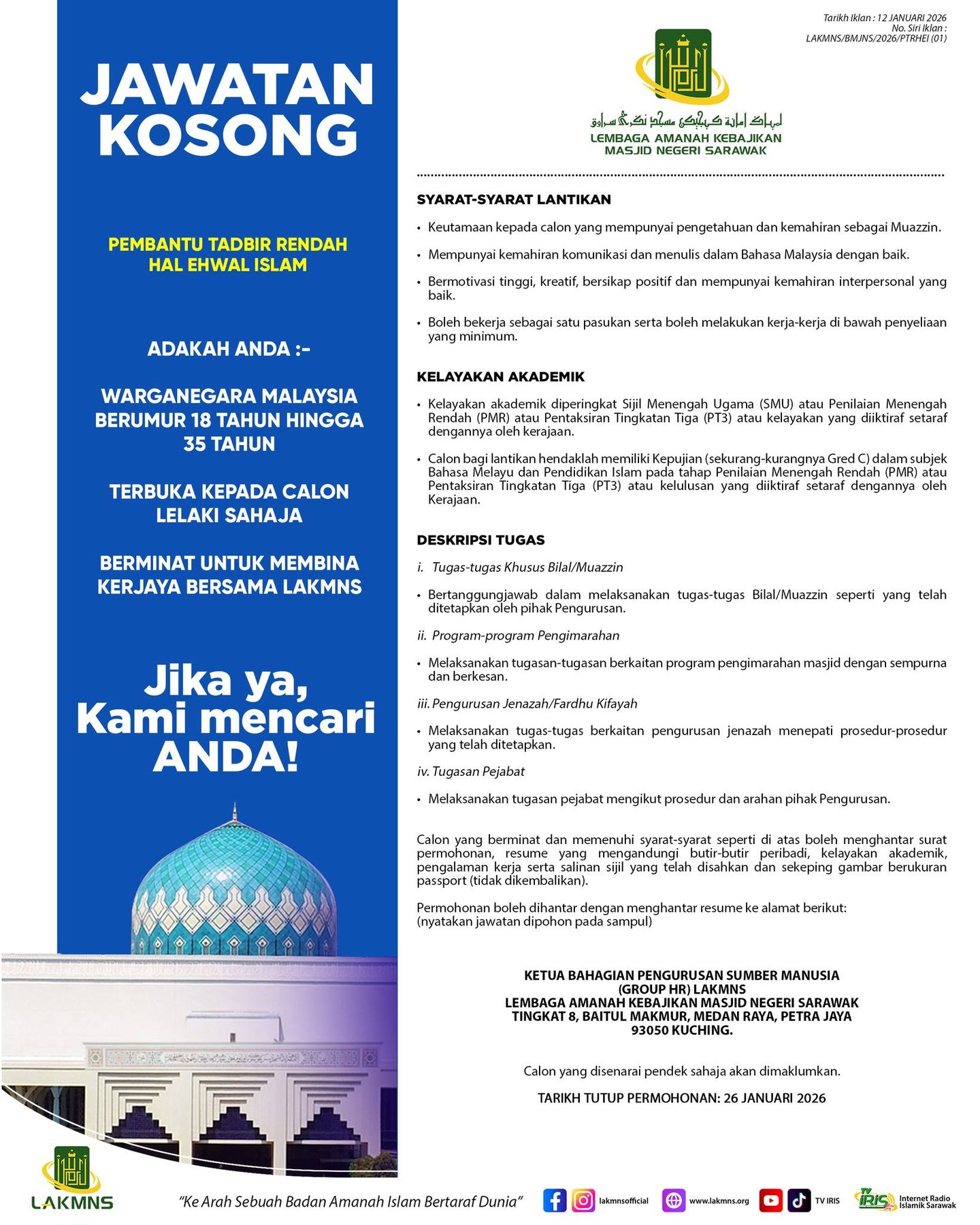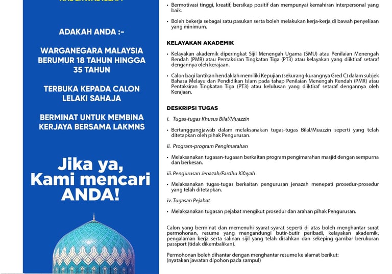 email us at vacancy@lakmns.org.my
